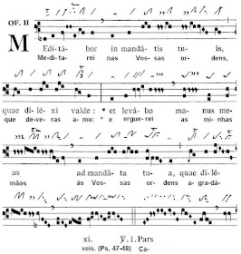 O cântico do Ofertório é o Meditabor in mandatis tuis (Graduale Triplex e Offertoriale Triplex). Os versículos que alternam com a antífona são bastante ornados. Tendes tão-bem a partitura do Offertoriale Restitutum cum Versiculis (PDF).