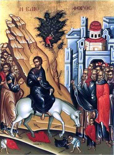 Samuel Baud-Bovy pensava che le due antifone fossero derivate da un modulo ellenico. Eric Werner, con maggior ragione, collega le due antifone a una tradizione ebraica di Sukkot (festa delle capanne). Di sfuggita si può ricordare che il nuovo messale italiano traduce “Le folle degli Ebrei”, mentre il messale tedesco specifica “Die Kinder von Jerusalem”.