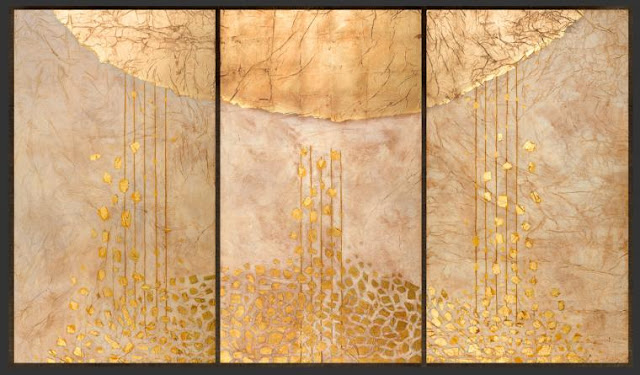 Magnificat de Nossa Senhora (Lc 1), em que a mulher revestida da luz de Deus Lhe eleva a sua oração em forma de notas musicais. Tríptico de Filippo Rossi.